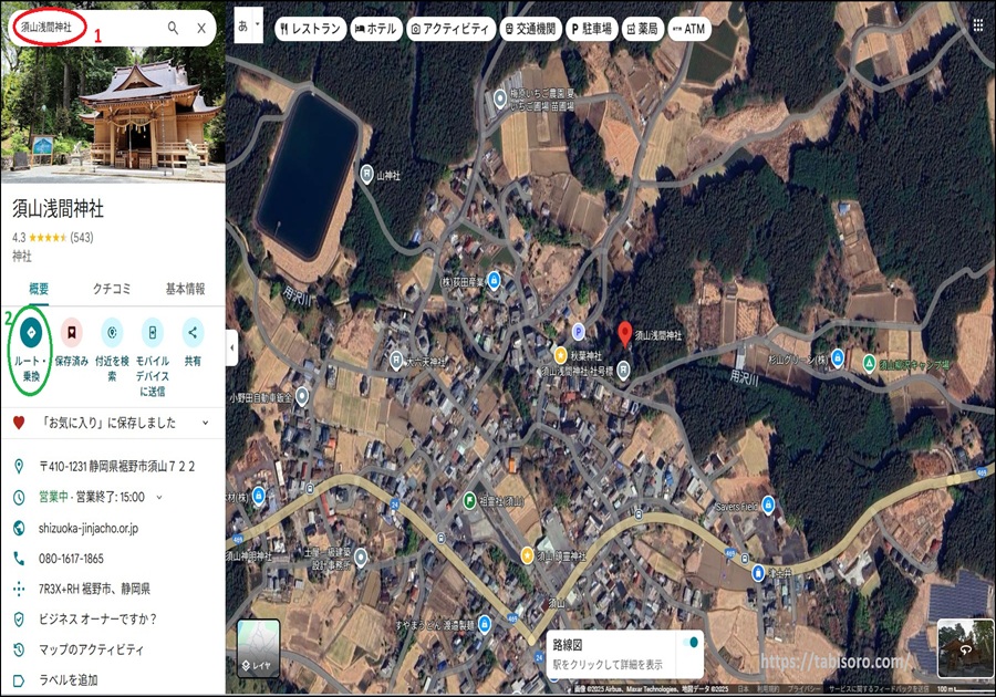 同じ名称で色々出てくる場合は、住所で選えらびウエブサイトがある物をクリック(ウエブサイトがある物は公式の場合が多い)