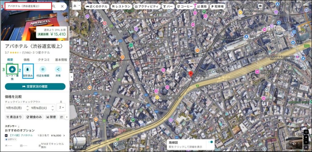 これで「ホテル → 神社 → カフェ → 観光地」といった自分だけのルートを作れます。