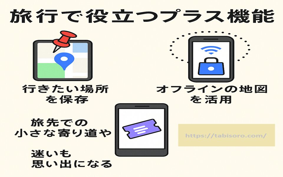 ですが、googleマップには旅行をさらに快適にするプラス機能が用意されています。